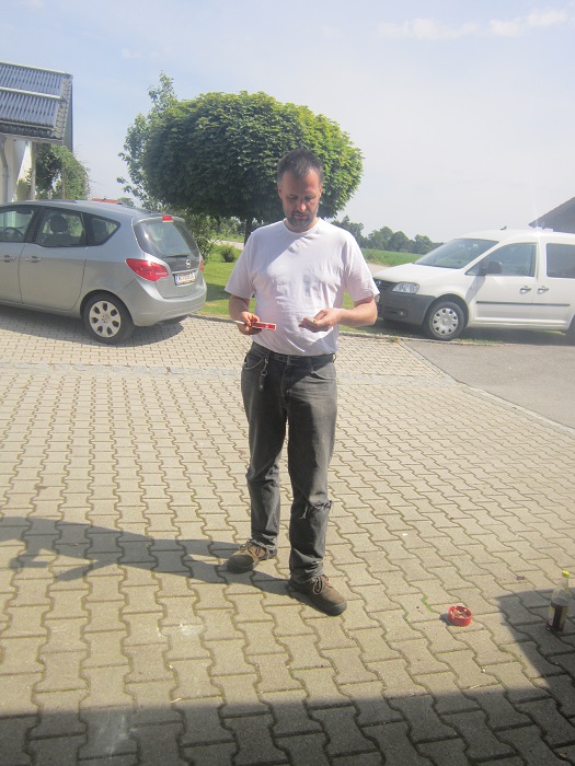 Syrien mit ihrem Hasel-Erstling war dank der tollen Hilfe von Lothar (im Bild), Gerhard und Mathias erfolgreich (hast scho Beinwell auf die wunden Fingerlein gegeben?)