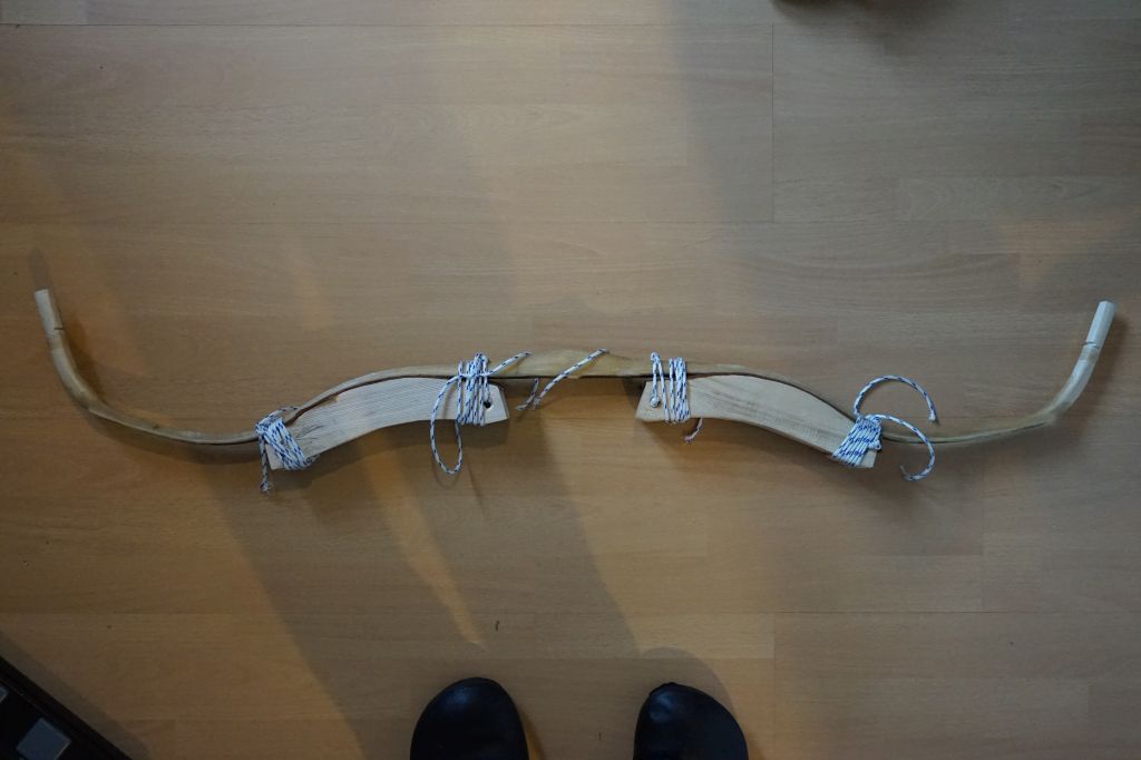 Danach das erste Aufspannen und tataaaa , der Bogen hat es überlebt und nach ein wenig richten sieht es in meinen Augen relativ gut aus. Ich wollte ihn über Nacht aufgespannt lassen, dass er sich an die Biegung gewöhnen kann.
