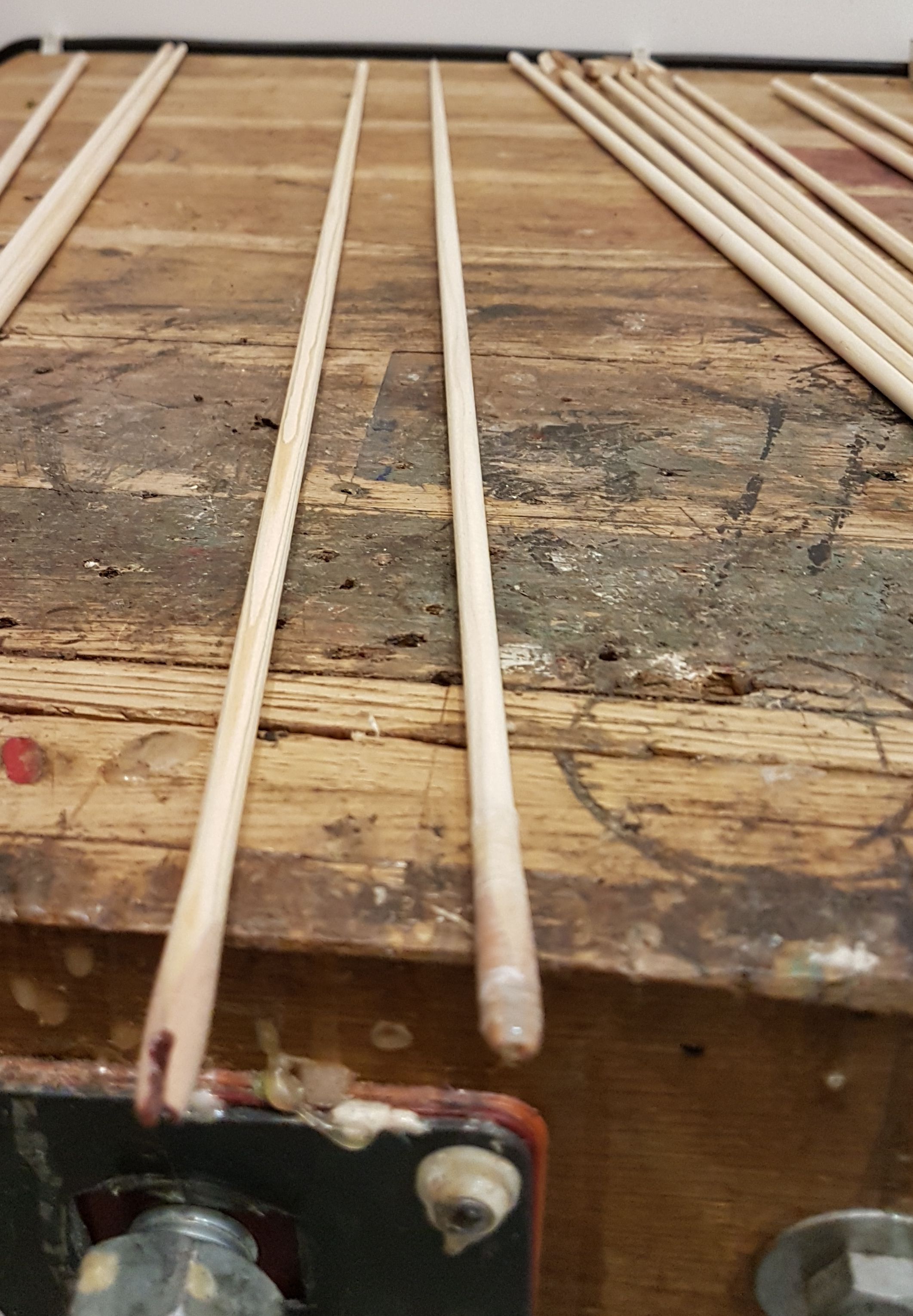 Und dann schieb ich mal gleich noch nen zweiten hinterher. Ich bin mal wieder spät dran, aber die Zeit reicht noch: Nocken mit Sehnen wickeln - Spitzen aus'm Messingstab rausarbeiten - mittig Löcher in die Spitzen bohren - mehrere Nocken ausarbeiten, mit Sehnen wickeln