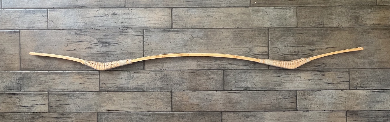 Der Holunder ist aus dem Rennen, hat sich verzogen und ist gerissen. Beim Wacholder- und Haselbogen werde ich das Mittelteil auch nicht gerade ziehen, das Kabel presst sich besser an das Mittelteil, wenn dieses leicht deflex bleibt, gerade beim Haselbogen ohne Kleber muss ja das Kabel auch den nicht geklebten Rohhautstreifen sichern. Ich bin bei meinen Experimenten zu dem Schluss gekommen, dass alles besser funktioniert, wenn Mittelteil und Außenbogen deflex sind. Auch im Auszug, da muss ja das Mittelteil fast einen Halbkreis biegen. Die historischen Bögen, die ich gefunden habe, haben fast alle Reparaturstellen im Mittelteil.