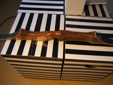 Nun, bist du ganz sicher, das da keine Glasschicht drauf ist? So glänzend, wie es auf einem Bild scheint wäre es für einen 40 Jahre alten reinen Holzbogen eher unwarscheinlich.