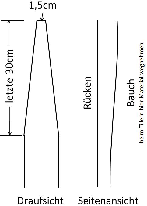 unter Tillering - Das Tillerbrett, der hat so ne Zahleneinteilung an der Wand gemacht, damit man es auch ganz genau hat, weil man schon mal schnell den Blick dafür verliert, wenn man 4 Stunden auf nen stück Holz schaut.