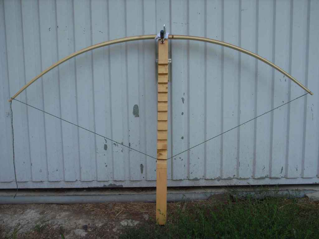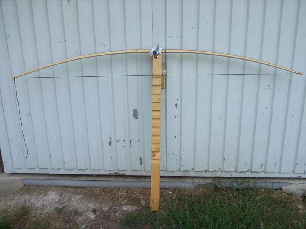 Wenn man solche Versuche macht sollte man wenigstens Kiefernholz nehmen mit möglichst engen Jahrringen, mit Backing als Bruchschutz kann man dann leichte Bögen mit einen überdimensionierten Design bauen.