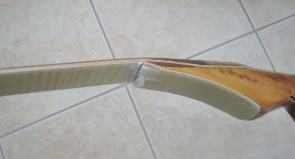 leider ist heute Nachmittag ein Wurfarm an meinem neuen Eigenbaurecurve gebrochen. ???