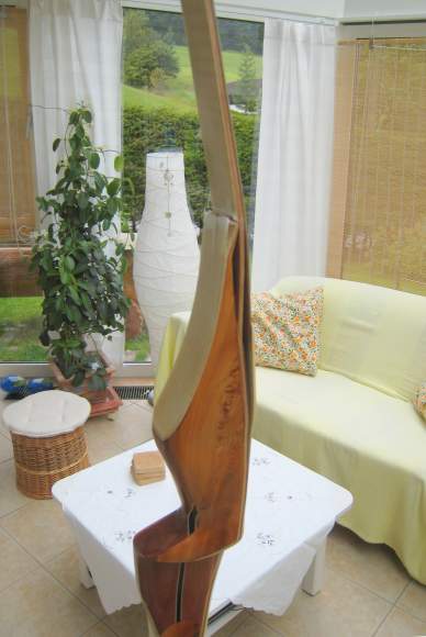 Es war der dritte Bogen den ich auf der Form und nach dem Plan von Swissbow gebaut habe. Der Erste hat ein Zuggewicht von 30lbs, der Zweite 35lbs und der gebrochene hatte ca. 45lbs. Die Bögen sind alle angenehm zu ziehen und werfen genau so wie Swissbow es in seiner Bauanleitung beschreibt. Ich habe Vorgestern mit dem heute gebrochenen Bogen etwa 25 Pfeile geschossen und war begeistert. Gestern Abend hat er als ich mal kurz an der Sehne zog diese abgeworfen. Warum nur?