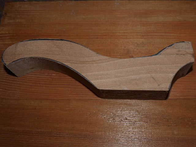 Wir benötigen ein kurzes Stück von 185 mm Länge, 60-70 mm Höhe und 35 mm Breite. Zuerst werden mit Hilfe eines Kurvenlineals die Umrisse aufgezeichnet.