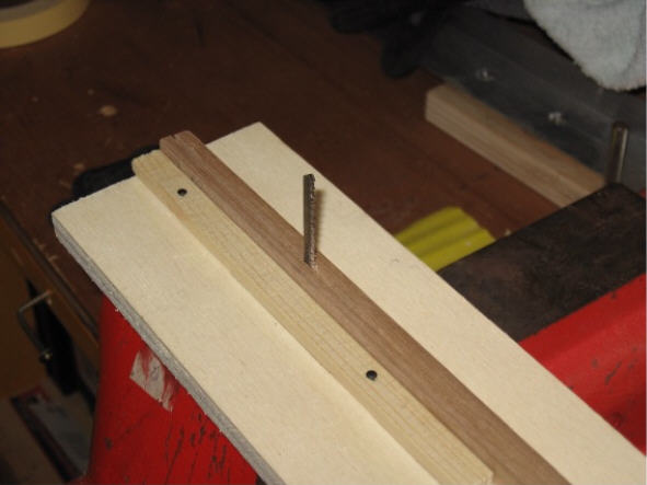 Der zum verkleben fertige Vorschaft. Mit dem etwas umgebauten Tool von Klaus1962 habe ich dann den Schaft zu einem Keil gehobelt wobei ich das Tool so eingestellt habe, dass der Keil vorne noch 1mm dick ist. (Beim Hobeln der 2. Seite hilft ein Nagel vorne, das sich der Schaft nicht nach unten drückt) Danach wird der Keil fein überschliffen.