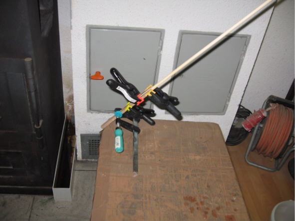 Danach wird der Spleiß verleimt. Ich habe wasserfesten Holzleim genommen, funktioniert sehr gut.