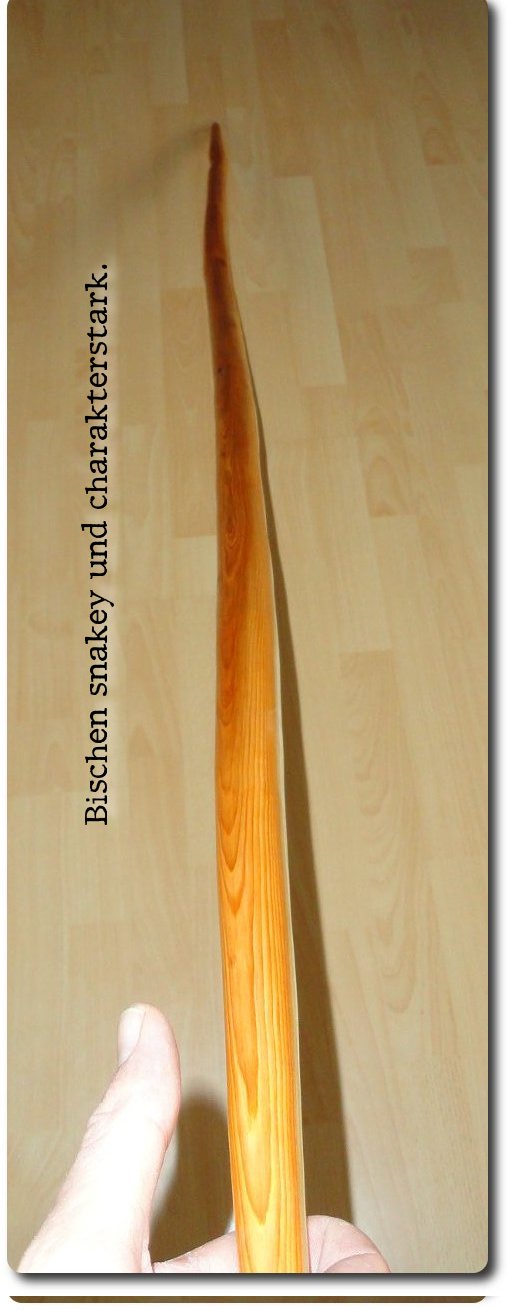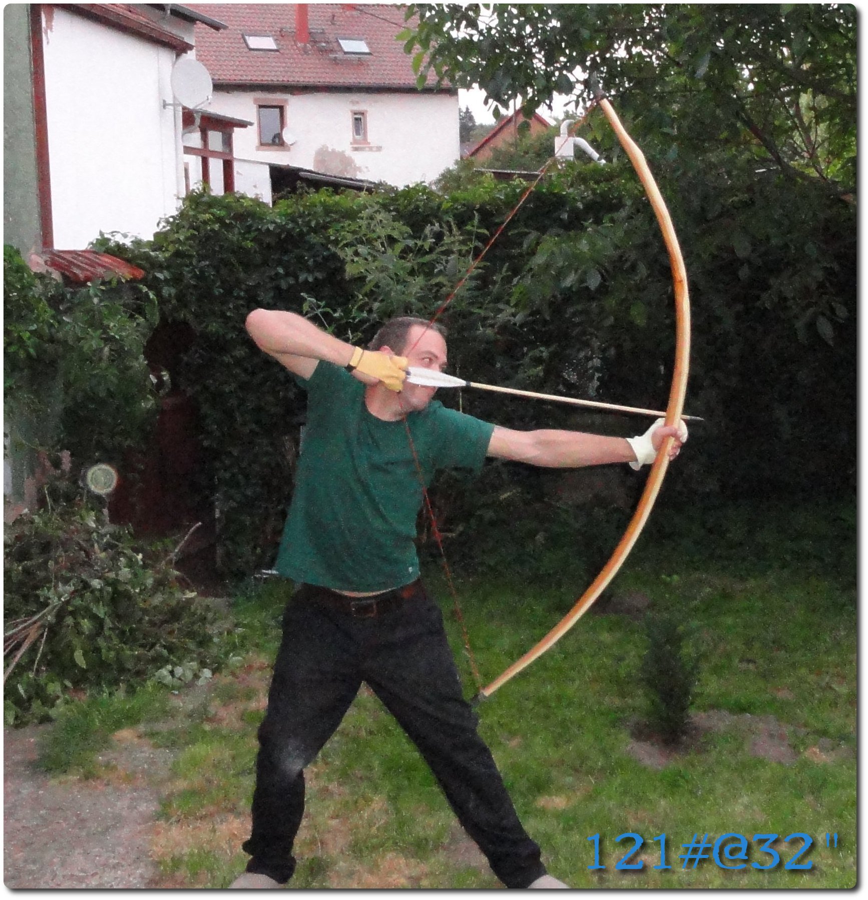 Geil! Es geht nichts über einen ordentlichen Eiben-Selfwarbow! Schön wuchtig, ordentliche Wurfleistung, massiv im Umfang und ebenso überdimensionale Pfeile! Ich find die Hornnocken gut so, was habt ihr denn?