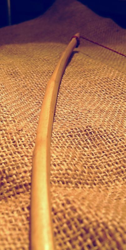 1. erfolgreicher Bogen: Hasel aus Sapling. Schießt noch heute und hat sogar nachträglich an Wums zugelegt, da er noch etwas feucht hinter den Ohren war.