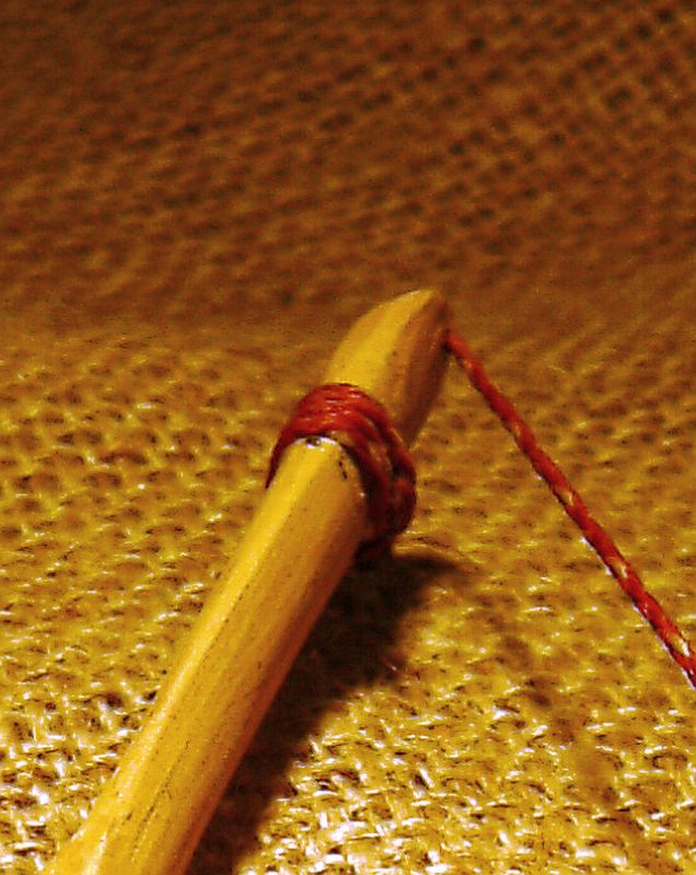 Dann 3 mit Strick verzurrte Glasfieberstäbe.
