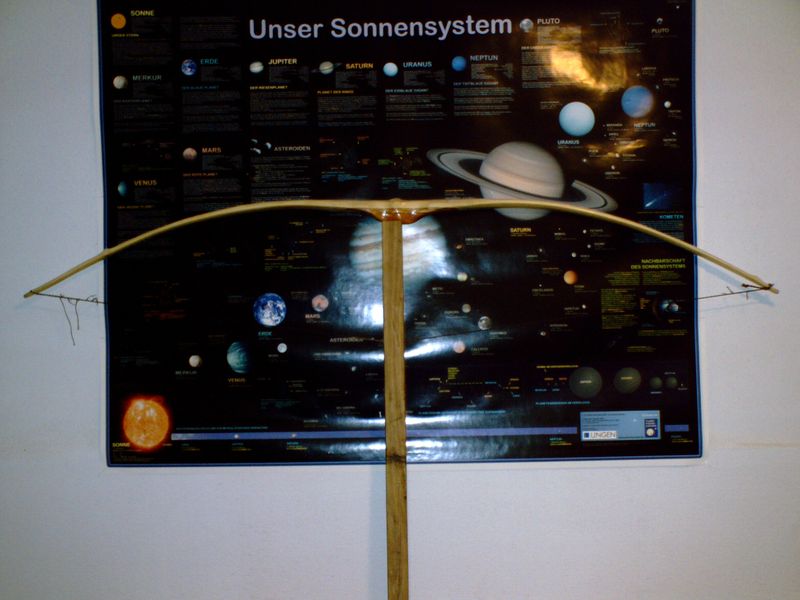 Hm, vermutlich ein Buchenlattenbogen von meinem Opa (als Kind