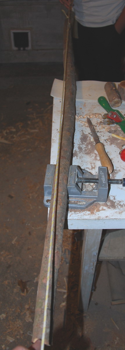 Bei diesem ersten Projekt war die Frage geht aus diesem dünnen Ast was vernünftiges also ein netter kurzer Bogen mit mindestens 30# Zuggewicht.