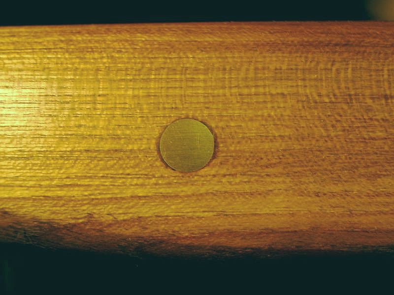 Ich habe es zwischenzeitlich mit den Hohlnieten versucht. 4mm Messingrohr, erst noch weichgeglüht. Das Holz etwas angesenkt und dann die Enden durch leichtes Hämmern gestaucht. Das Ergebnis war erträglich gut, der Rand ist natürlich auch etwas nach innen gestaucht, daher ist das Loch im Rohr nicht mehr kreisrund.