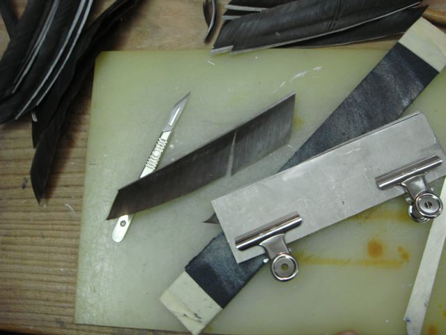 Federn Schneiden - Metallschablone und Skalpell