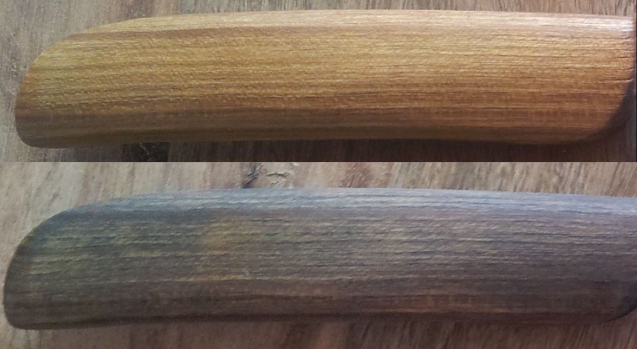 Der ehemals Goldig schimmernde Laburnum Griff mag jetzt gar nicht mehr schimmern und ist echt mies zugesetzt :-(((