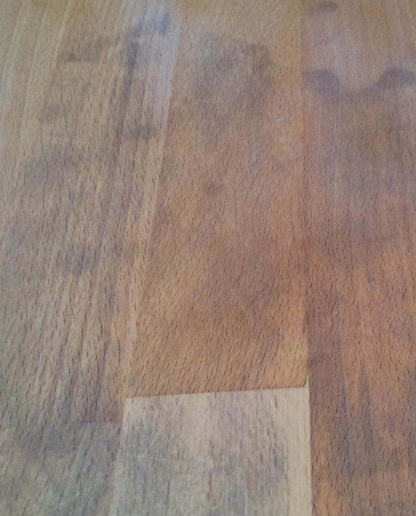 Aber das schlimmste an der ganzen Geschichte, meine Massive Küchentischplatte (dort habe ich die Schleifarbeiten durchgeführt) ist durch nebenher gesickertes Wasser (mit Schleifmatsche) auch richtig versaut.