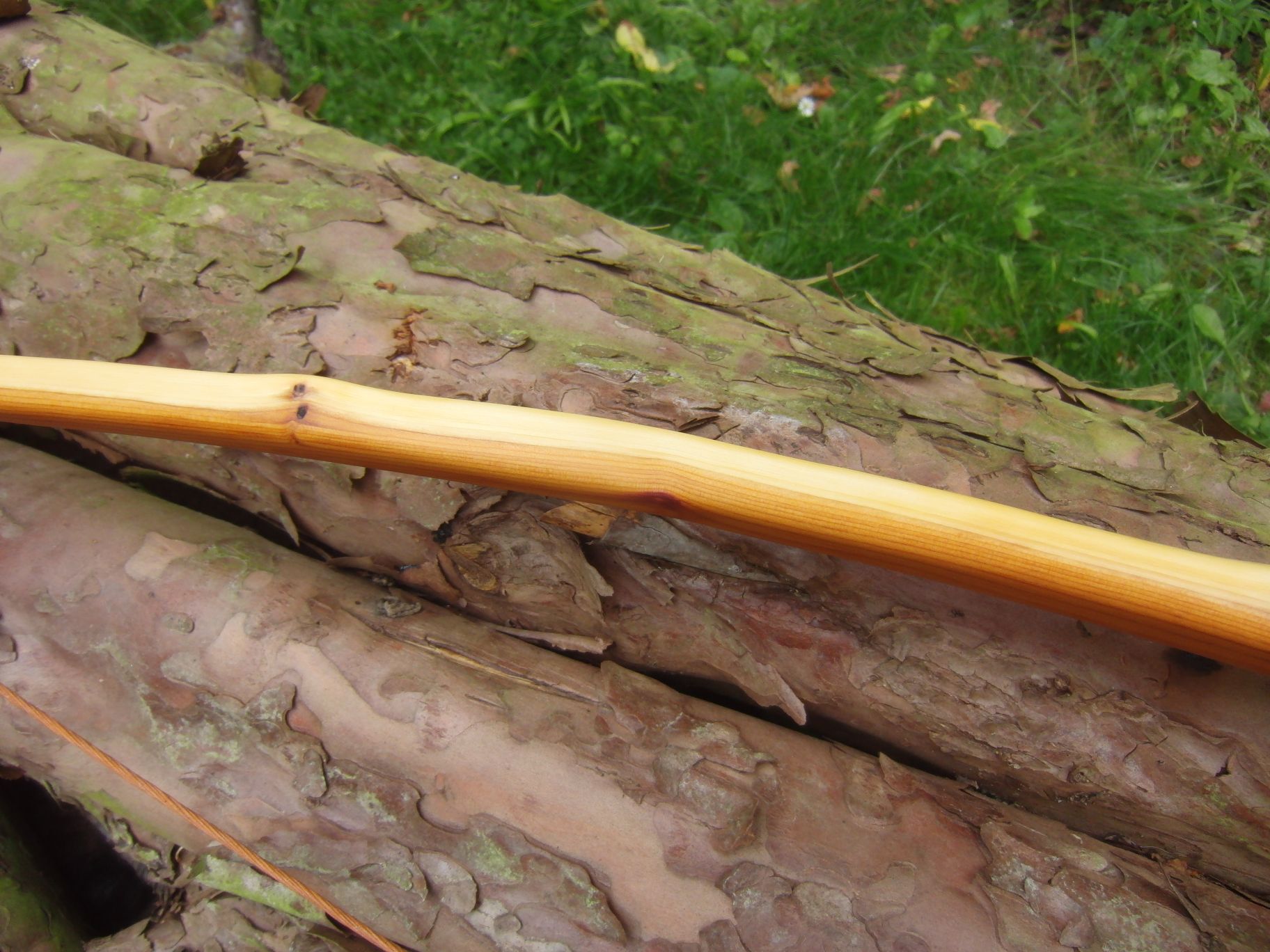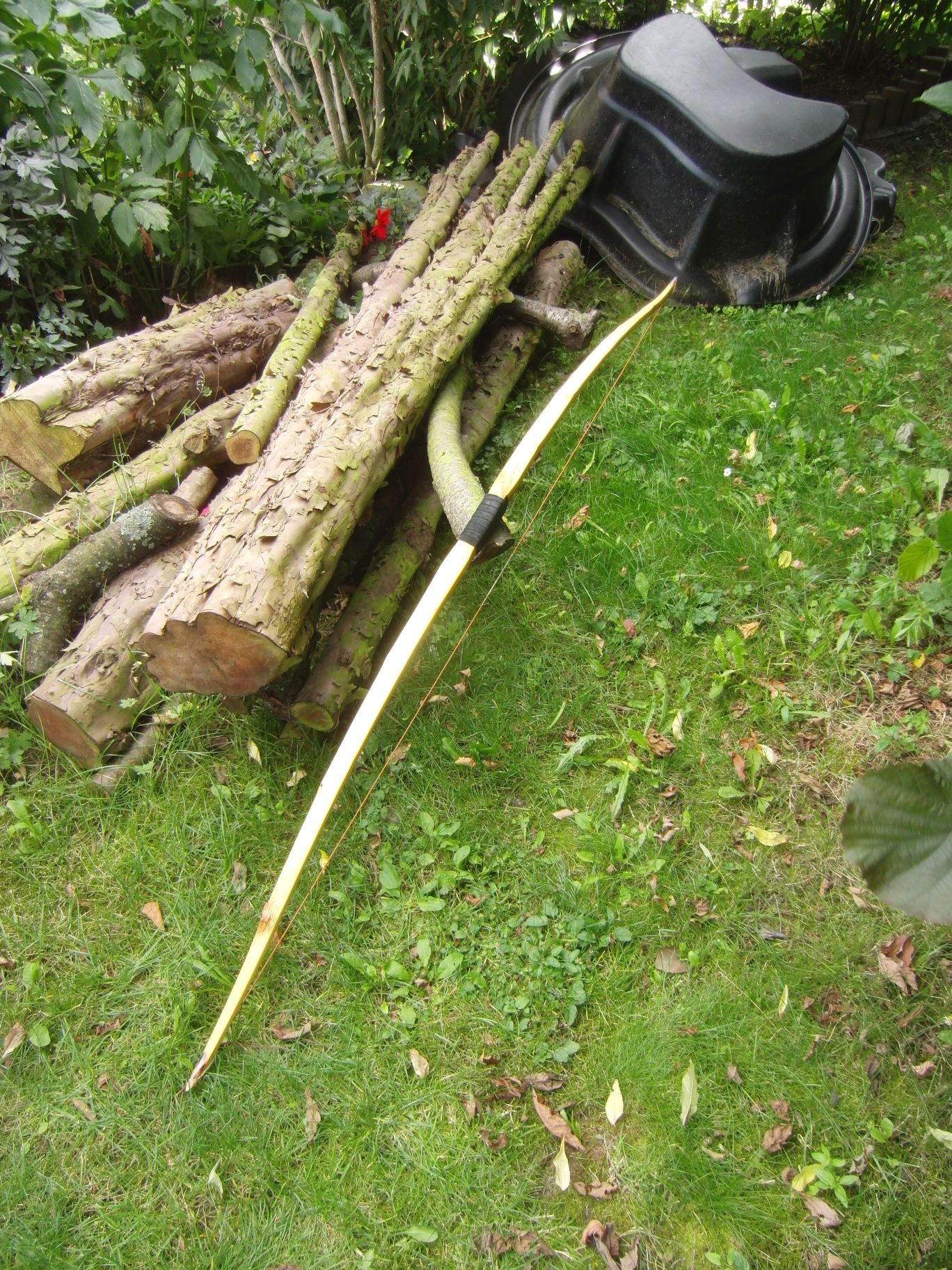 ich HÄTTE ihn breiter gemacht, aber dann hätte ich kein schönes Kern-Splintholzverhältnis mehr gehabt. Denn der Bogen wäre dann viel Flacher ausgefallen und dann wäre nur noch Splint übrig gewesen.