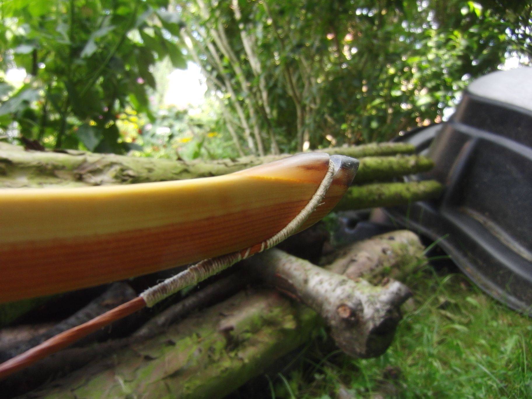 Gefinnished wurde der Bogen mit Leinölfirnis. Das Holz flammte schön auf. Mir fast einer der liebsten Momente im Bau eines Bogens