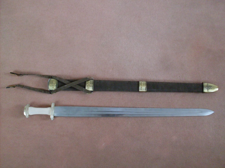 Das "hundsbillige Schwert ist von Swords und More und war mal ein Wickingerdingens.( Scheide in bescheidener Quali, aber war ja egal wurde eh umgebaut)