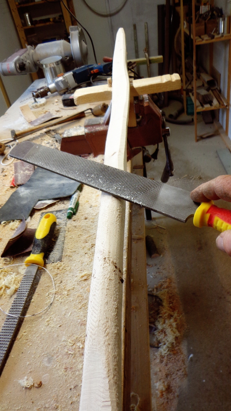 Zwischendurch kontrollierter Biegebereich im Schraubstock. Diese Art zu 'tillern' könnte man auch den einarmigen Bandit nennen.