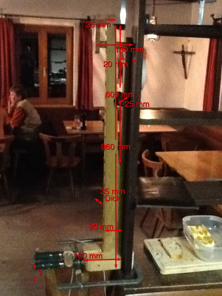 Blieben nur noch Seilrolle (kein Chinazeug, das beim scharf hinsehen bereits brach und wohl den gleichen Reibungskoeffizienten aufweist wie 40er-Schleifpapier) und Holz (keine Tanne und keine Fichte und auch keine Buchenleisten, weil die nur 1 cm dick sind).
