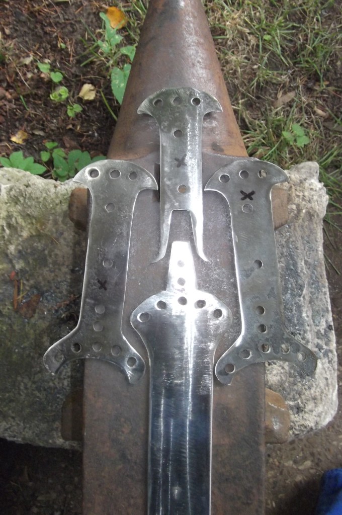 Klinge und Griffteile sind miteinander heiß vernietet, an Parier und Knauf werden noch von beiden Seiten jeweils 4mm
