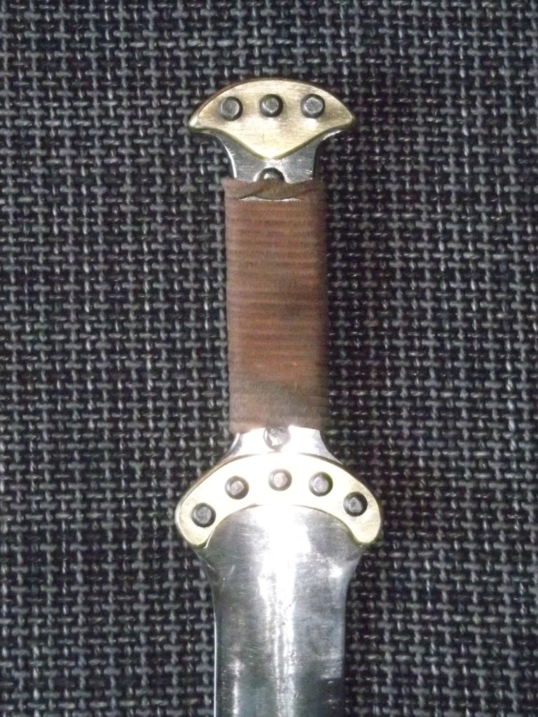 Messing Applikationen auf-bzw. durchgenietet, der Griff wird noch eine Lederwicklung erhalten...