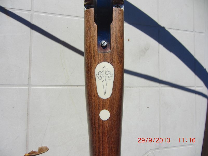 Bei dieser Armbrust hab ich einen Bogen von Jens Sensfelder verwendet.Er rastet bei 190kg ins Schloss ein.Bei meinem vorhergehenden Eigenbau habe ich eine 6mm starke Autofeder umgearbeitet.