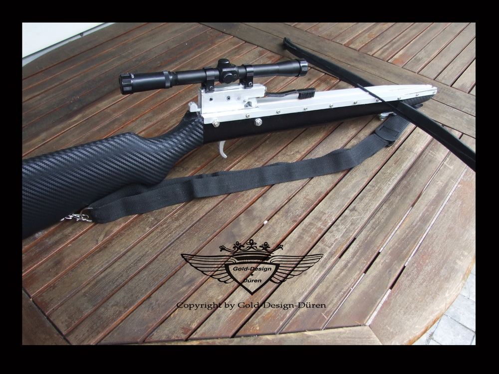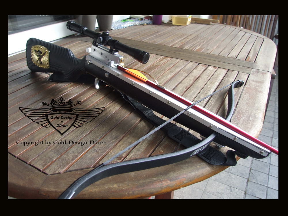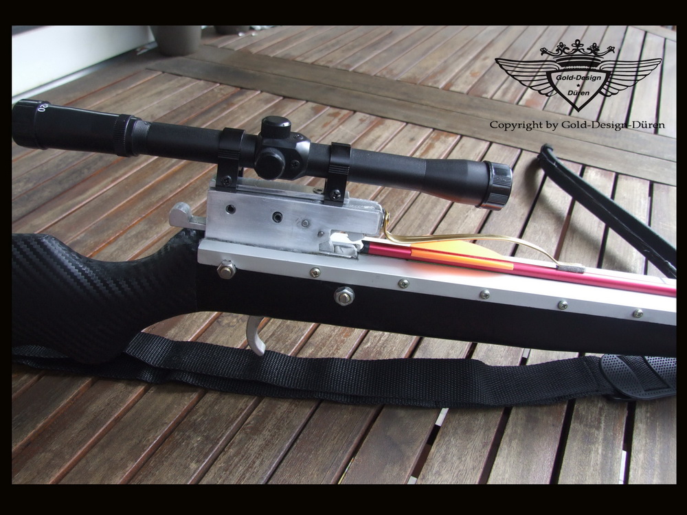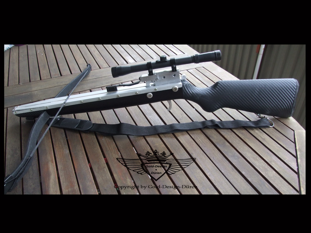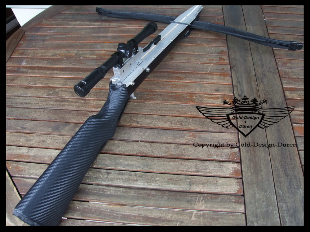 Also für deine erste Armbrust: ALLE ACHTUNG! Sehr schick geworden ..auch wenn vieles gekauft ist, trotzdem ein sehr schickes Teil geworden! Hast du den Schaft nochmal mit Carbonfolie überzogen? Sieht alles seehr "technisch" und gut verarbeitet aus! Gefällt mir echt gut!