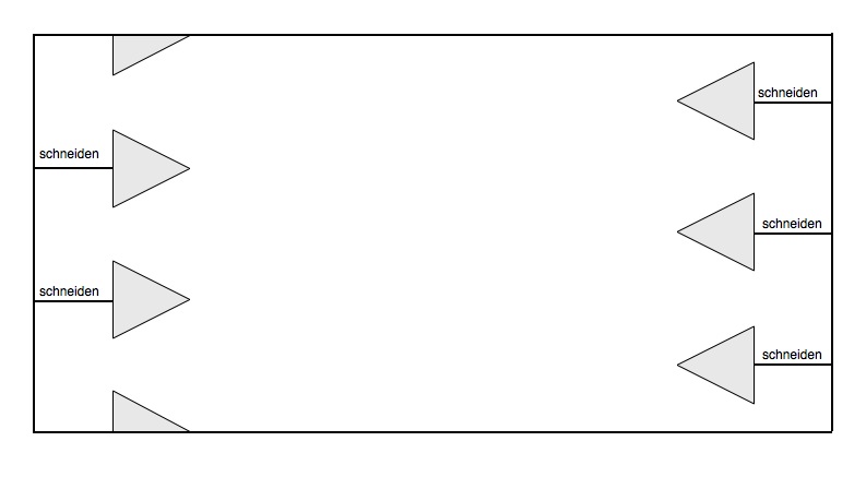 Die Dreiecke ausschneiden und von den Dreiecken aus die Linien zum Rand hin schneiden.