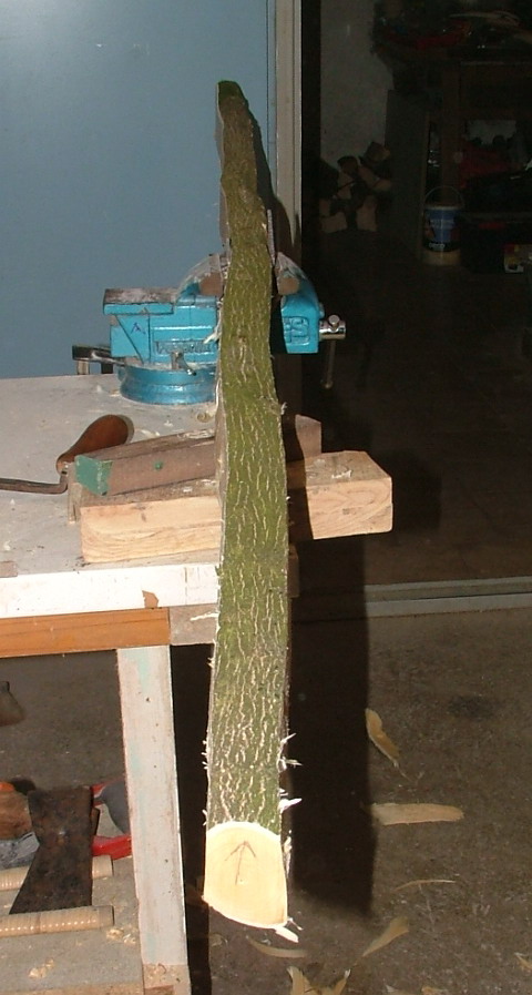 Aber zunächst weiter mit dem Hartriegel, ich hab als erstes die Seiten des Stammes mit dem Ziehmesser entfernt und den ganzen Stamm auf Rohbogenbreite gebracht.