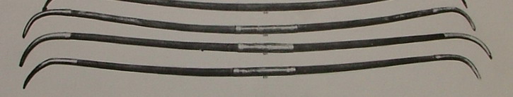 3. starke im Profil kreisrunde Recurves ohne eine Einkerbung die die Sehne in Position halten würde.