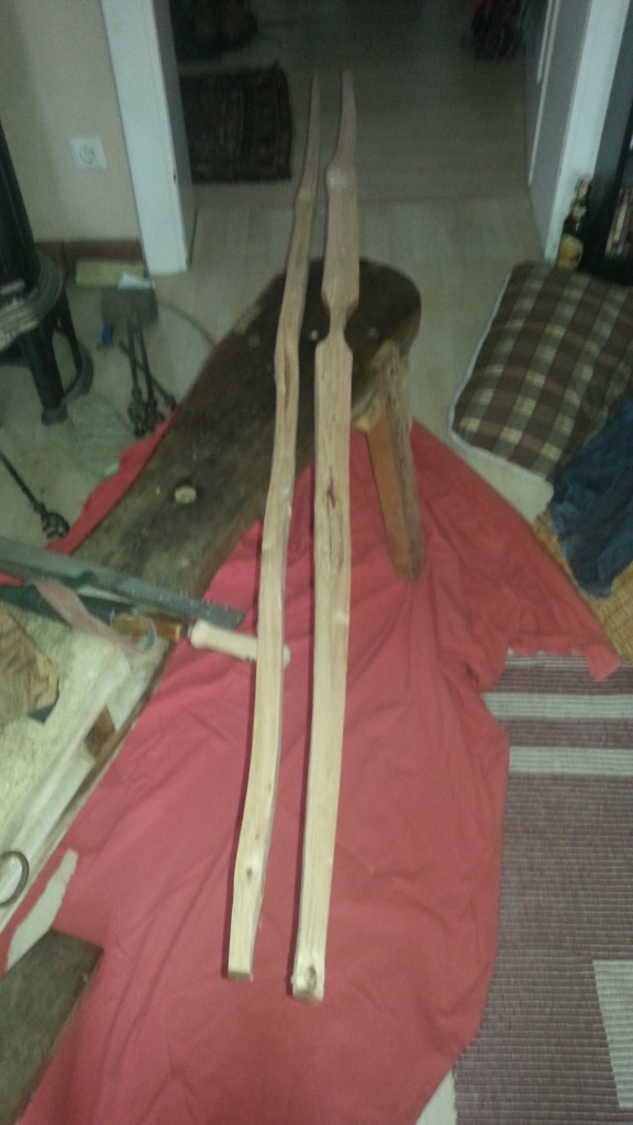 Ich habe keinen Versuch mit den stehenden Jahresringen gestartet und statt dessen ausschließlich einen pyramidalen Flachbogen und einen elbartigen LAngbogen angefangen.
