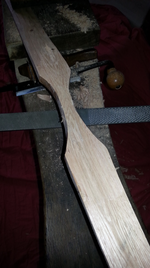 Um den Bogen zu retten habe ich den Griffbereich dann mit der Hufraspel plan geraspelt um eiGriffstück da hinter zu leimen.