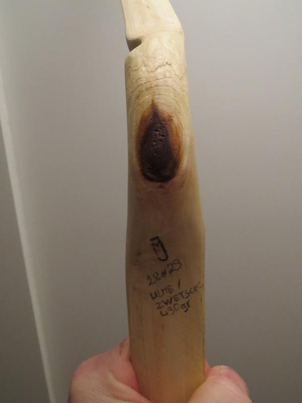 Holz ist Ulme, würde ich darauf wetten. Mach mal ne Nahaufnahme von der Griffseite...