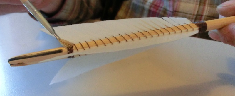 Zum Abschluss wird die Wicklung noch geschützt, meistens mit Schellack oder aber mit Leinölfirnis. Sollte sich davon etwas in die Federgrannen ziehen, macht das nichts, es blättert nach der vollständigen Trocknung bei der Pfeilbenutzung von den Grannen wieder ab.