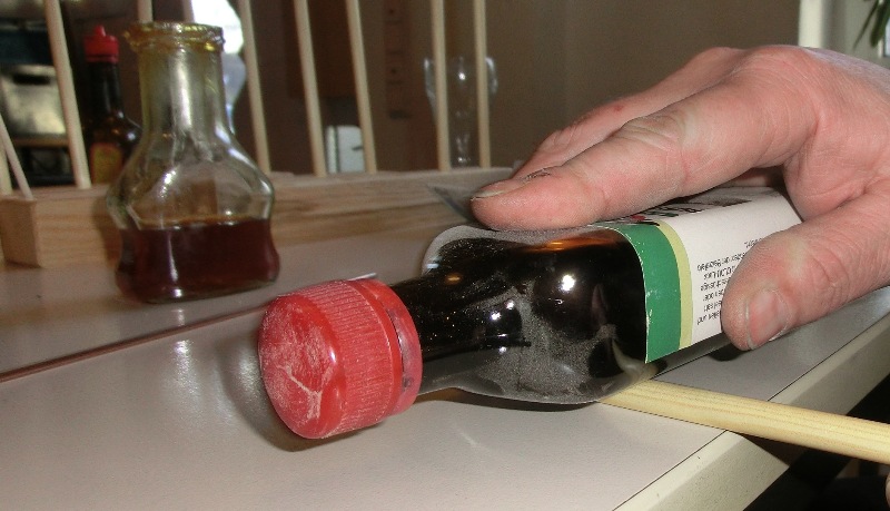 Fehlt noch das Anbringen der Pfeilspitze, bei Schraubspitzen komprimiere ich die Schäfte vorne durch Rollen mit einer Glasflasche.