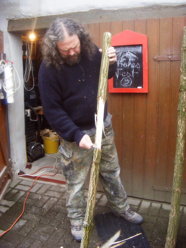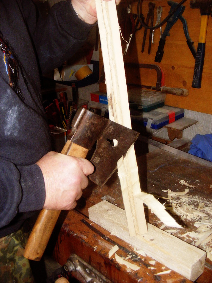Hallo Jannik , ein paarmal biege ich die Wurfarme am Schraubstock zum Vergleich. Passt schon... ;) Das Beil stammt aus einem Nachlass von einem Fassbauer.