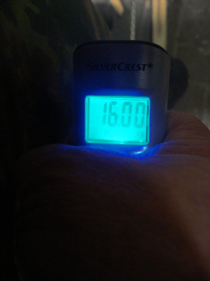 Zugwaage sagt 16kg bei 28" somit zufrieden...