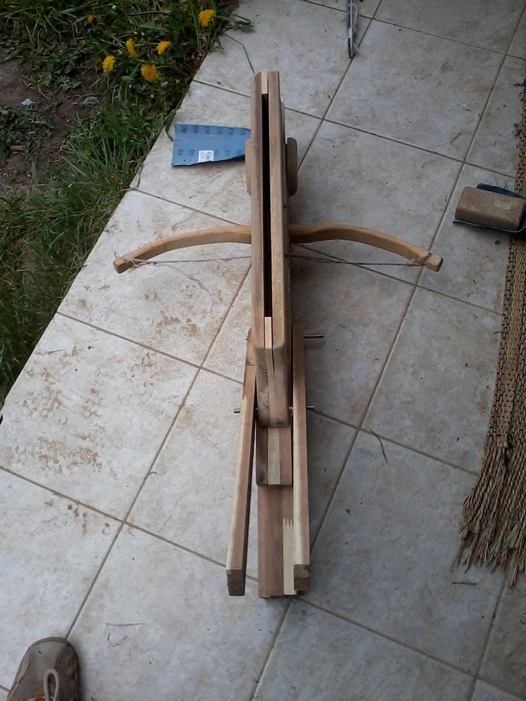 Jaaa..die AB ist größer geworden als ich erwartet hätte. Das liegt daran das in den Aufzeichnungen (die ich gefunden habe) von einer Bolzenlänge von 12 -16 Zoll gesprochen wird und als "Magazininhalt" 6 bzw. 12 beschrieben wird.So ist das Teil eben gaaanz schön groß! :D Ich vermute mal ich habe da die Überlieferung einer Repertierarmbrust erwischt die auf dem Schlachtfeld eingesetzt wurde. Normalerweise wurde dieser Typ Armbrust zum beschützen des eigenen Hauses eingesetzt quasi die Pumpgun der alten Chinesen. Allerdings ist dafür DIESE Größe komplett ungeeignet! Ich kann mir aber gut vorstellen das 100 Chinesen mit solchen Armbrüsten auf einem Schlachtfeld eine gar garstige Wirkung erziehlt haben. Wie schon gesagt: die 200 Pfund sind gar nicht so schlimm wie ich dachte. Der Hebelmechanismus relativiert das ganze ganz schön. Wenn das gute Stück fertig ist und ne Präsi ansteht mache ich auch mal ein Video. :)