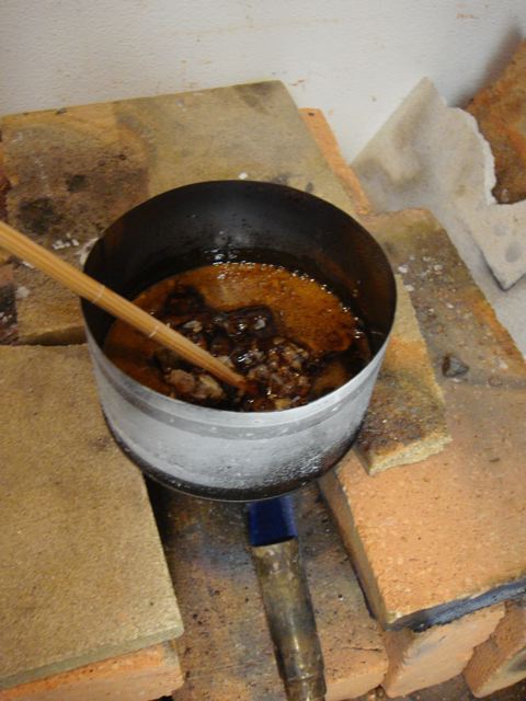 Man ließt, dass dazu das Kolophonium z.T. stundenlang gekocht wird...