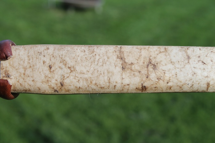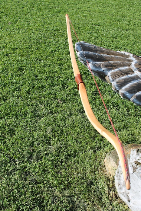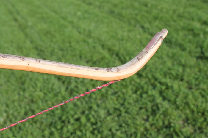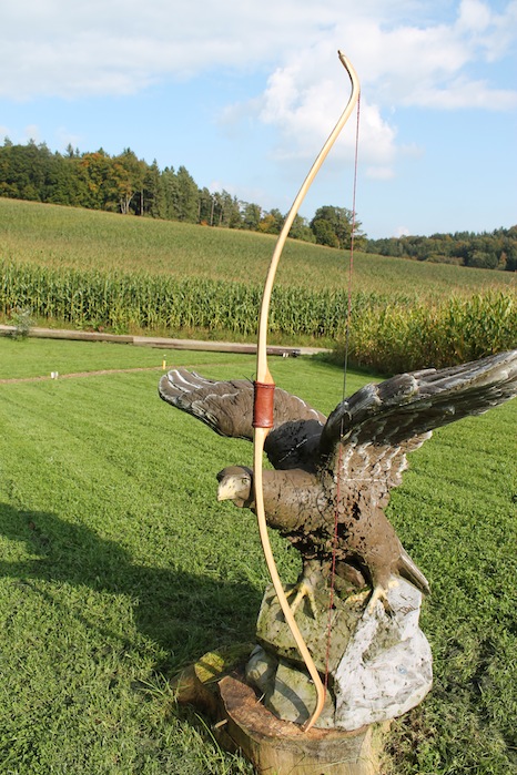 Ich hab also einen neuen Eibe-Bogen in Stil eines klassischen Osage-Recurves gebaut, die mir in letzter Zeit etwas zu inflationär geworden sind. Deshalb hab ich sowas mal in Eibe versucht und bin begeistert. Er Schießt sich überragend gut und butter-weich und macht 155 ft/sec. Backing ist Hirschrohhaut (linksherum geklebt) und die Tips (fast schon needles) haben Antilopen-Overlays. Die starken Recurves und die sehr schlanken Wurfarme dachte ich mir als etwas knifflig, da so was sehr schnell das Drehen und Kippen anfängt. Aber ich hatte keinerlei Probleme, die Sehne läuft perfekt mittig und landet immer sehr exakt in den Führungsrillen der Recurves. Alles extrem schnurgerade. Länge ist 153 cm, WA-Breite max. 31mm und Zuggewicht ist 40 lbs auf 26 ". Eibe kann also auch Osage.