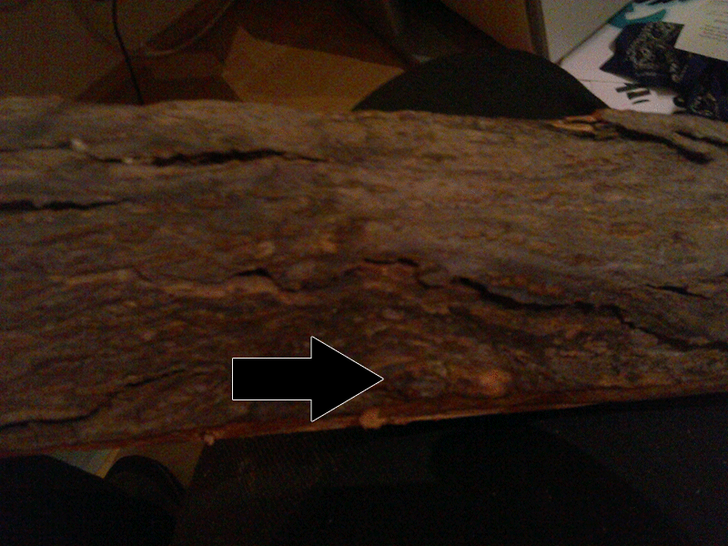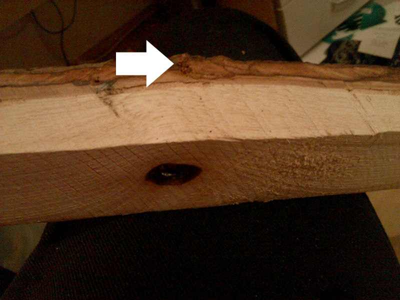 ...jetzt das Problem, und zwar hat der Stave im oberen Drittel ein fettes Astloch was sich vom Bauch