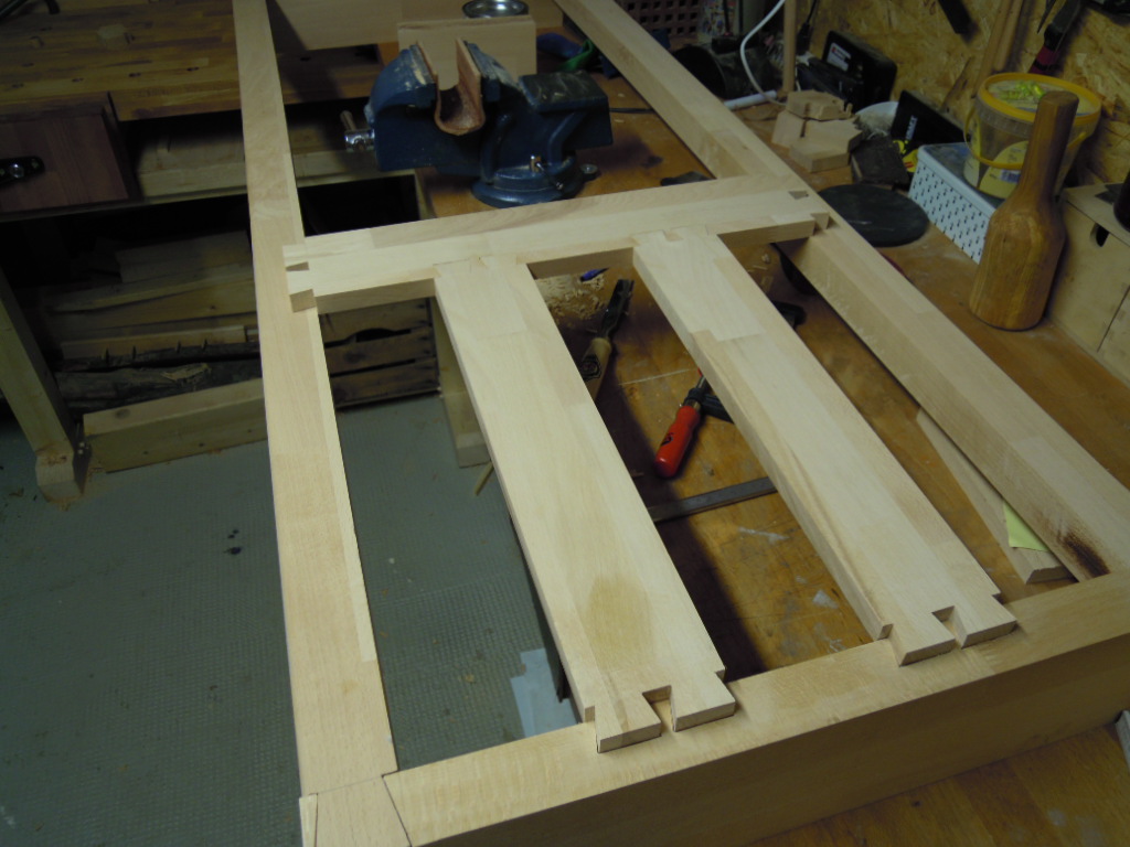 Die Aufnahme der Schubladen wurde ebenfalls gezinkt, dies hat mehr optische Gründe, Dübel wären hier auch gegangen.