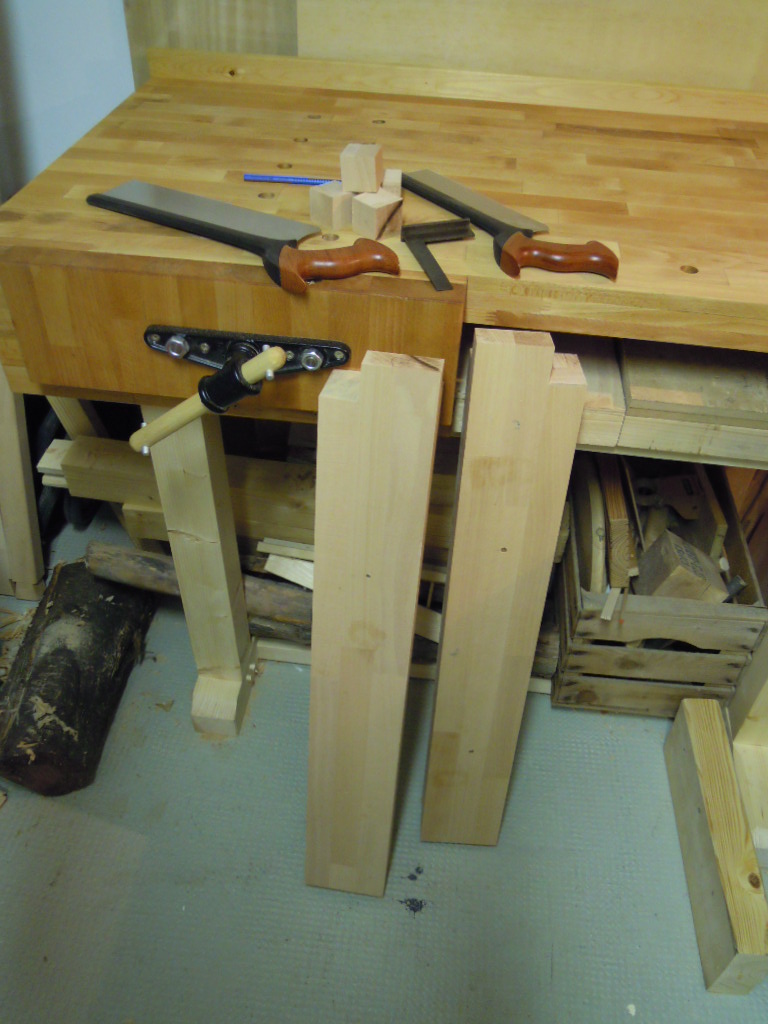 Die Zapfen zur Aufnahme der Arbeitsplatte werden zugesägt.