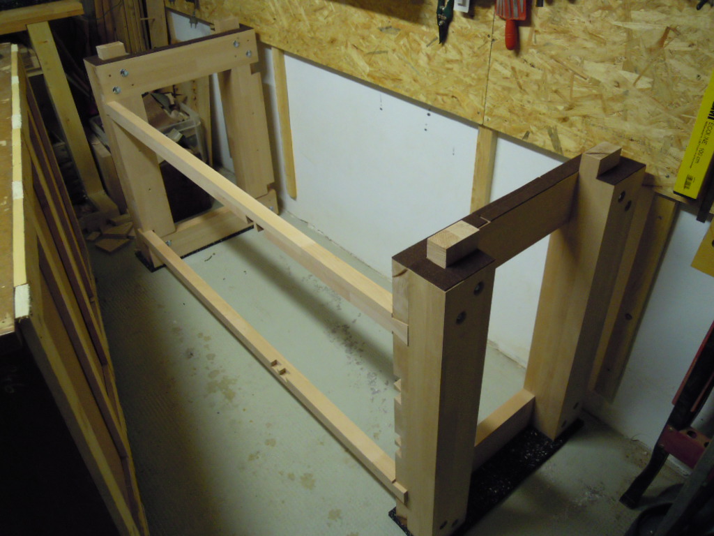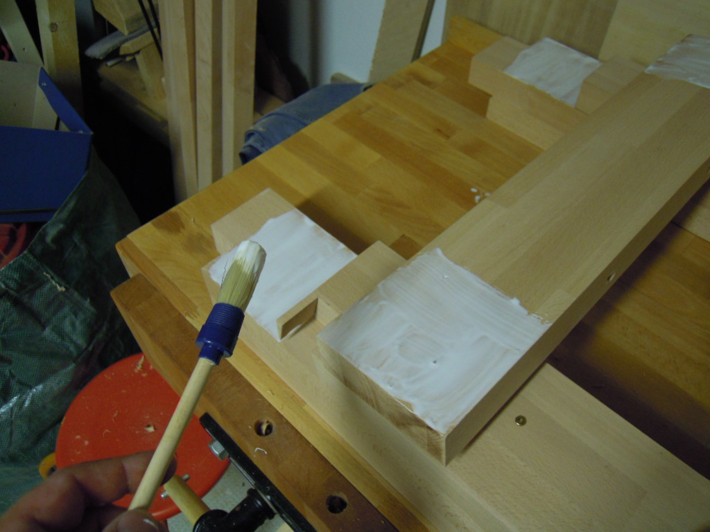 Die Beine mit Auflagen werden verleimt und zusätzlich mit Schrauben gesichert.