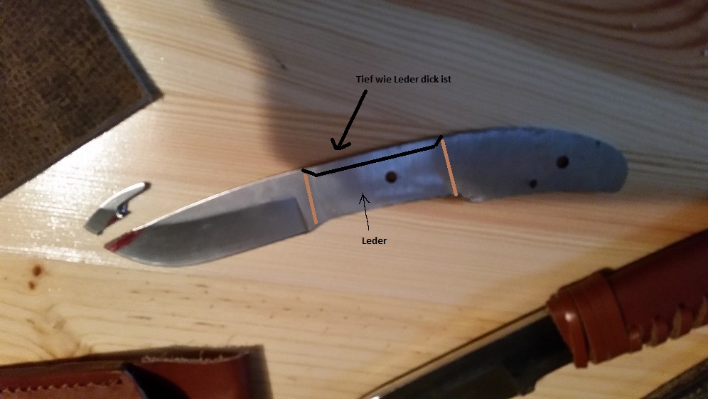 Länge gesamt: 186 mm keine Sorge das Rote ist Edding für die Anreisnadel. Ich habe den Seilschneider der Klinge einfach abgesägt weil es mir nicht gefallen hat. Abgesehen davon war er eh nicht scharf. Mein eigenes Messer (liegt daneben) hat eine schöne Steckscheide. Aus dem dunklen Lederrest möchte ich eine ähnliche Scheide basteln. Über den Griff bin ich mir noch unschlüssig. Aber Anregungen sind gerne wilkommen. Alle Ergebnisse folgen nach und nach. :-)