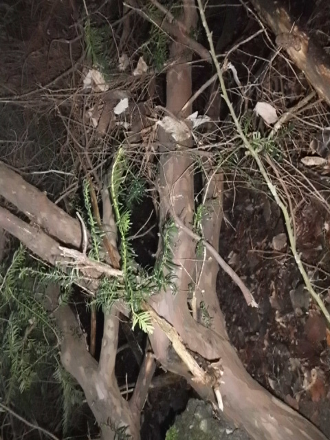 Ab in die Werkstatt, begutachten und erst einmal nackisch machen, da er im mittel ein Durchmesser von 6cm hat, wird er später per Bandsäge geteilt.