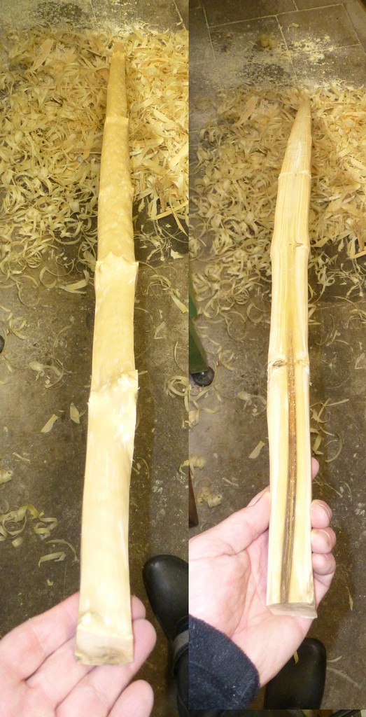 Mit dem Ziehmesser besäumt und beschlossen mit dem langen Teil einen ELB (194cm) zu versuchen. Die andere Hälfte (172cm) soll ein Möllegabet werden. Die zweite Hälfte kommt dann die Tage.